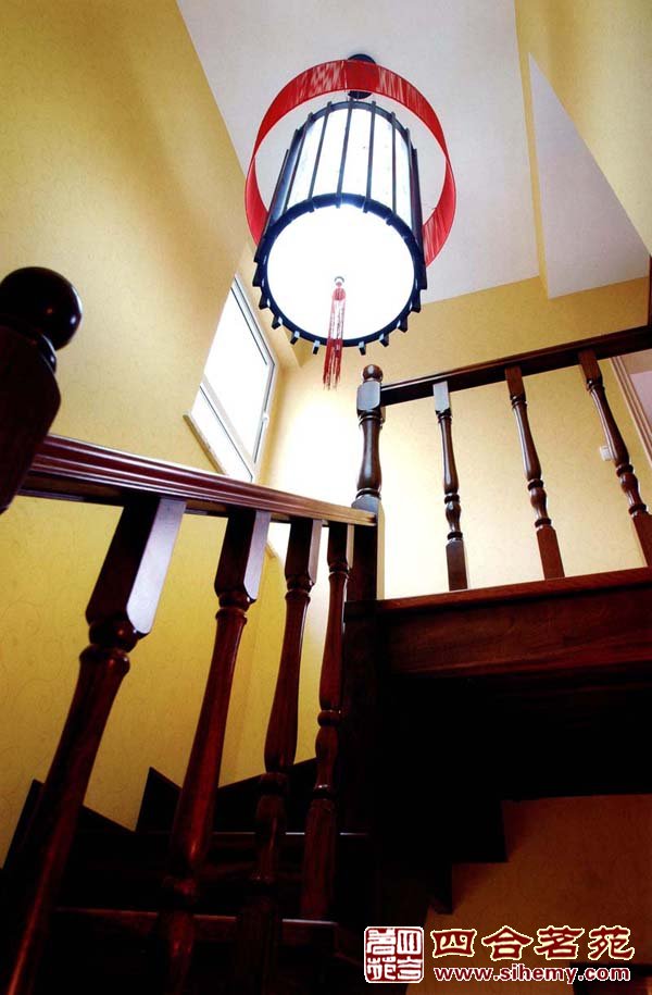 樓梯頂部一盞中式花燈,意味即已足夠。