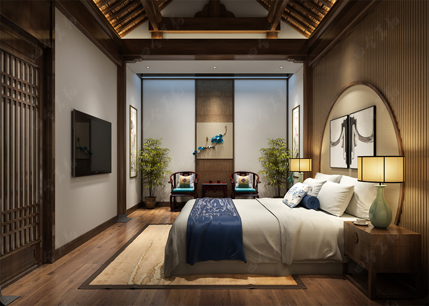 格調高雅、穩重內斂,空間中散發出濃重的古典文化氣息。梁架結構凸顯出古典大氣的氛圍。精致中式工藝品、古典風格家具透過富有巧思的處理,都恰到好處的融入了整體的中式古典風情中。